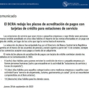 La reducción de plazos fue estipulada hoy por el Directorio del Banco Central de la República Argentina en el marco de los acuerdos de precios y estará vigente a partir del 15 de octubre, siempre que los comercios acepten esos pagos a través de un adquirente.
